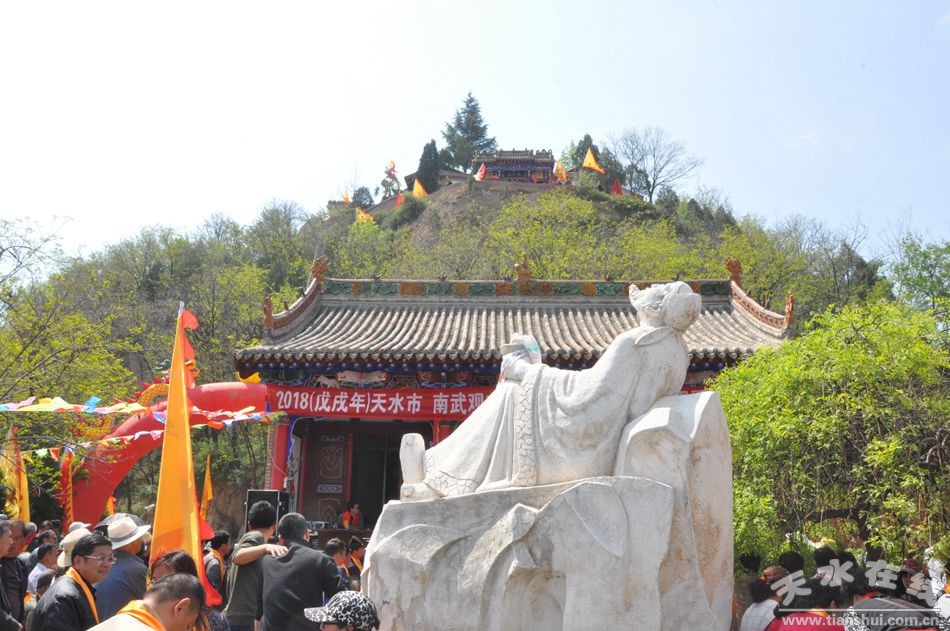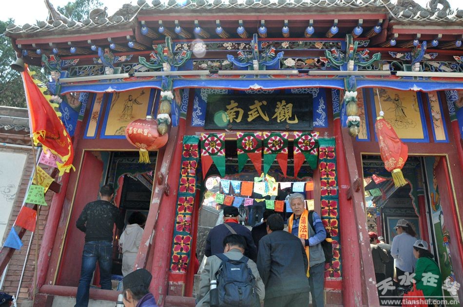 現(xiàn)占地面積30多畝的南武觀,于1992年開始由幾位鄉(xiāng)賢發(fā)起募捐修復(fù),然后受到七里墩、十里鋪、曹家梗、張家溝、羅玉溝、巷口村等十八村民大力支持,齊心協(xié)力籌資,先后建起仿明古建筑真武大殿、三宵殿、財(cái)神殿、方神殿、山神土地殿、山門、文昌殿、寺廟、戲樓、工作室等13殿30多間,雕塑神像27尊,大型壁畫39幅。成為秦州城東大門知名道觀圣地,旅游和觀景者絡(luò)繹不絕,每年三月三日廟會熱鬧非凡。