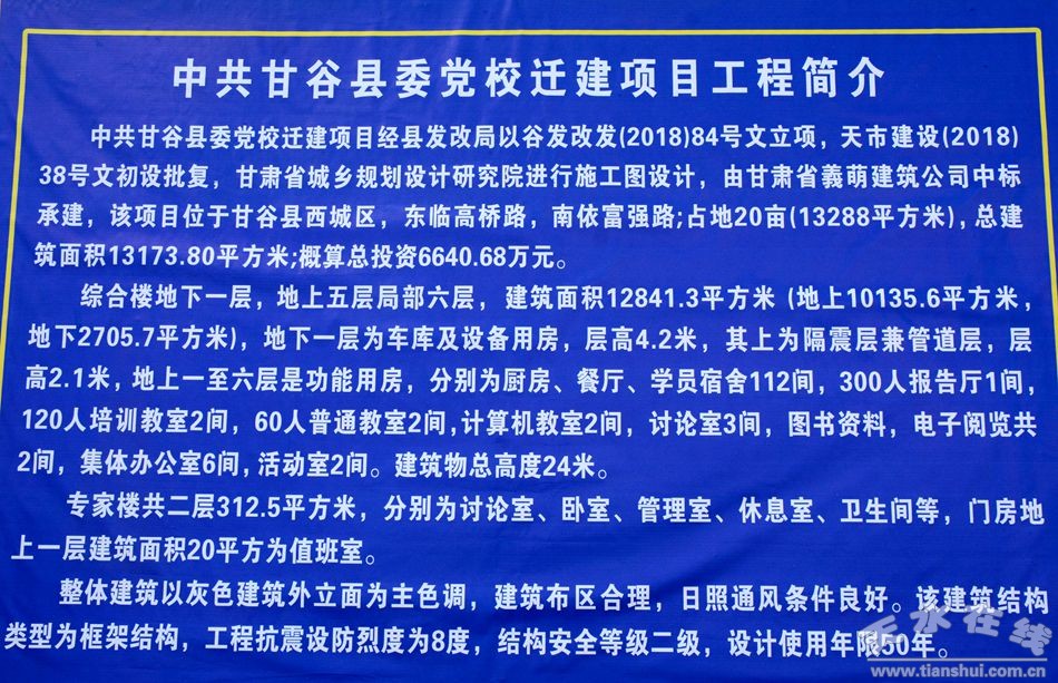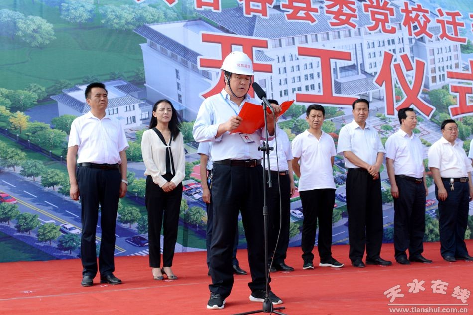 天水在線甘谷報(bào)道 7月28日,中共甘谷縣委黨校遷建項(xiàng)目開工儀式舉行。縣委書記申君明講話并宣布項(xiàng)目開工;縣委副書記、縣長(zhǎng)吳健,縣政協(xié)主席馬驥等縣四大組織領(lǐng)導(dǎo)出席開工典禮并為工程奠基;縣直有關(guān)部門負(fù)責(zé)人,大像山鎮(zhèn)鎮(zhèn)村干部,項(xiàng)目施工企業(yè)、監(jiān)理單位負(fù)責(zé)人等共計(jì)500多人參加儀式。