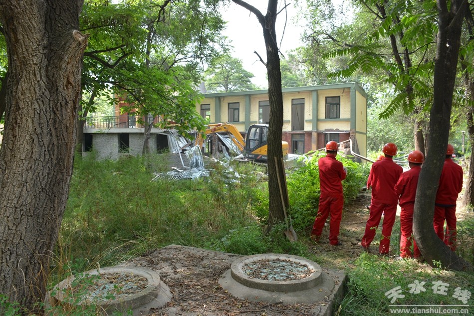 ▲工作人員正在拆除岷山廠片區(qū)違法建筑