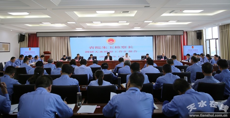 9月12日,省檢察院黨組書記、檢察長朱玉帶領(lǐng)調(diào)研組來我市,就我市檢察工作開展情況作了專題調(diào)研并召開匯報會。天水市委常委、政法委書記蒲軍主持匯報會。