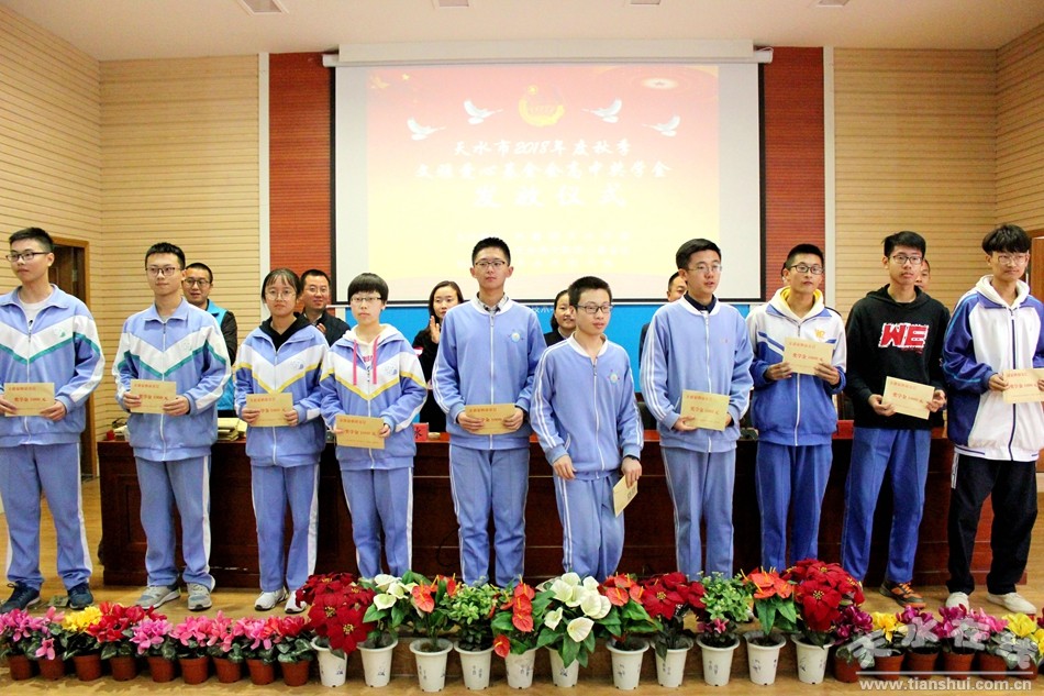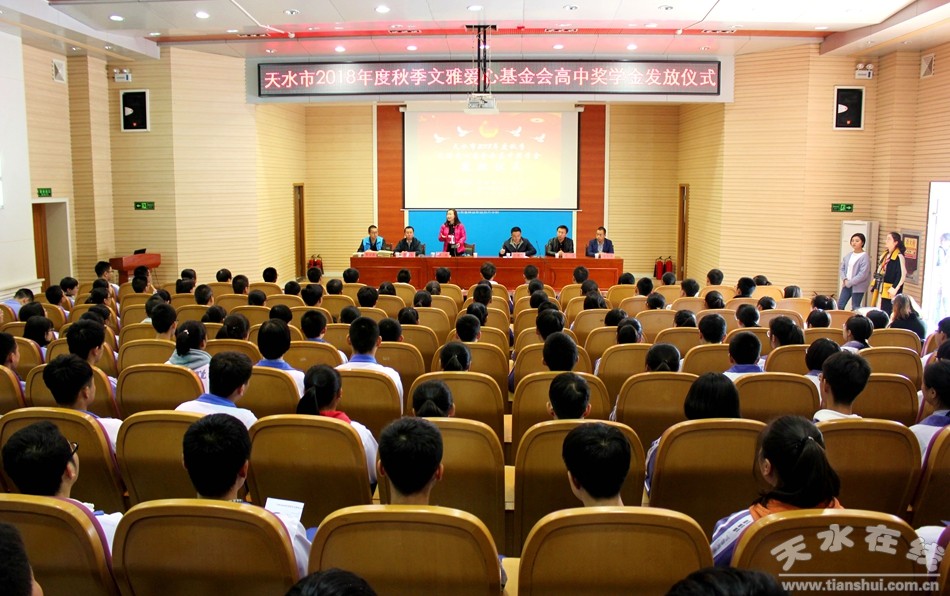 10月11日,天水市2018年度文雅愛心基金會高中獎學金發(fā)放儀式在市圖書館舉行。我市590名優(yōu)秀高中生每人獲得1000元資助,獎學金金額共計59萬元。