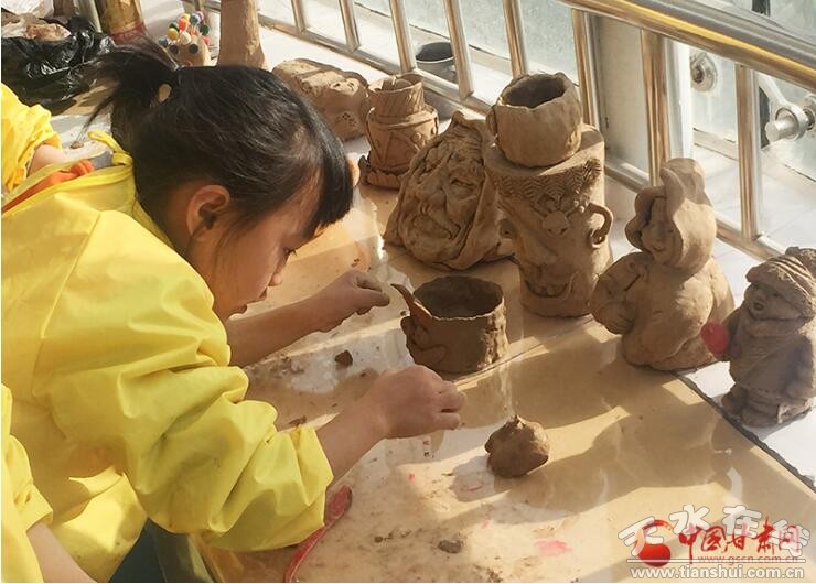 (孩子們?cè)趯W(xué)習(xí)泥塑)