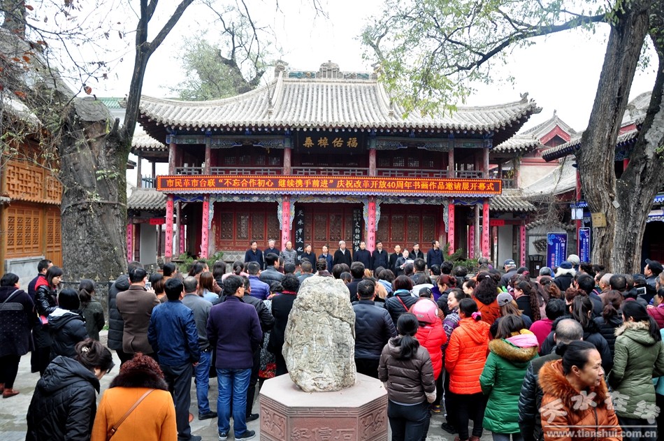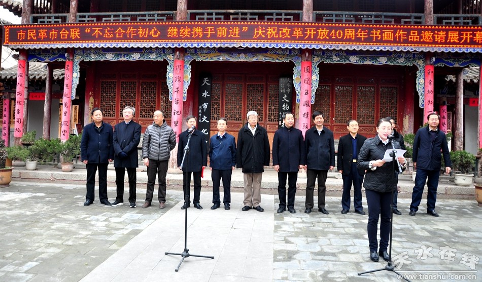 11月28日,由民革天水市委會舉辦的“不忘合作初心,繼續(xù)攜手前進(jìn)”為主題,慶祝改革開放四十周年書畫作品邀請展在開水市文化館開展。市政協(xié)副主席屈光平出席并參觀展覽。
