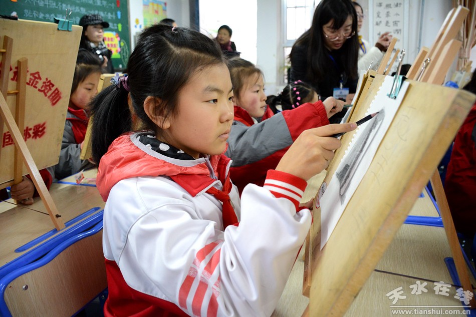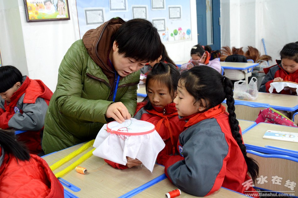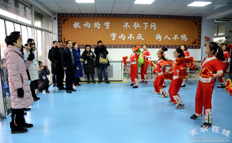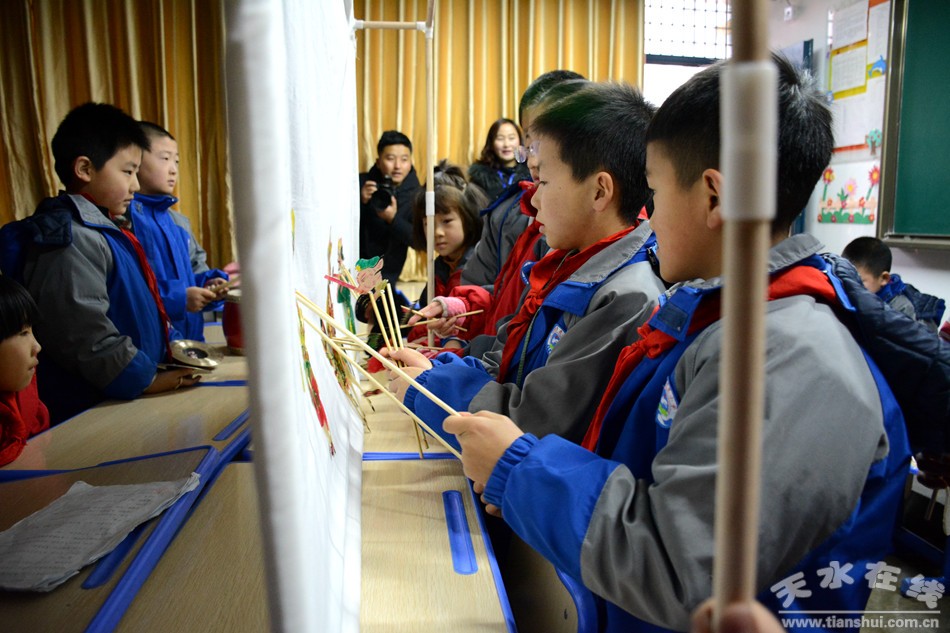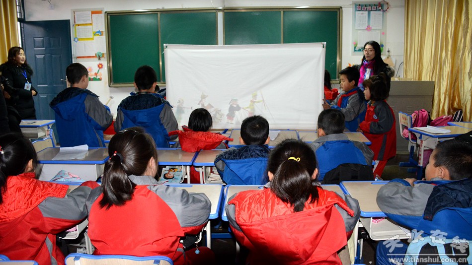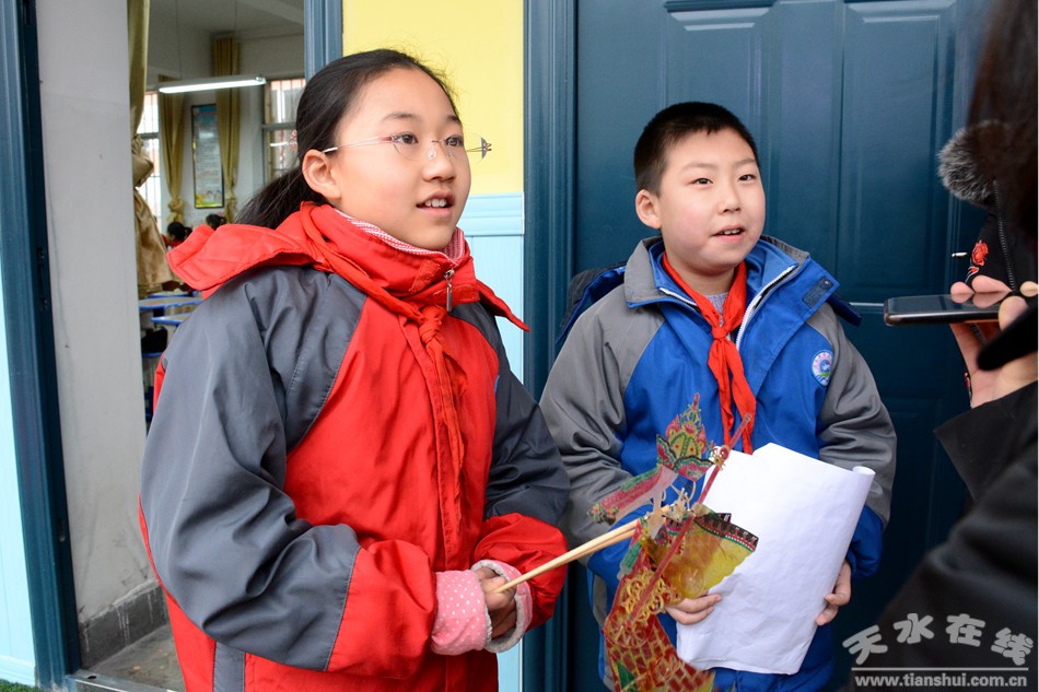 (清水縣原泉小學(xué)皮影班教學(xué)教師倪萍介紹有關(guān)學(xué)生開展興趣班情況)