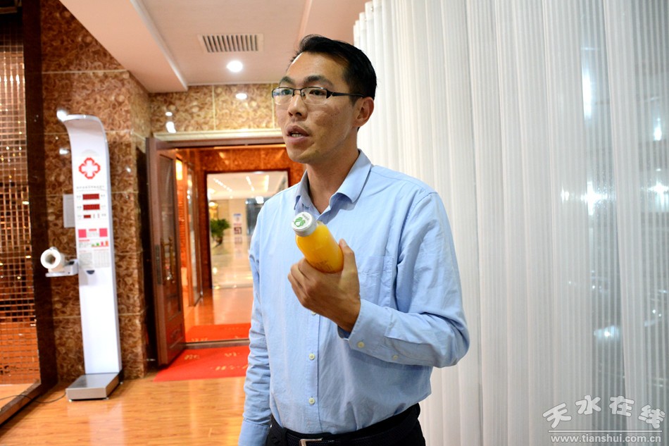 (天水華盛農(nóng)業(yè)綜合開發(fā)有限公司副總經(jīng)理李松旺介紹產(chǎn)品沙棘汁)