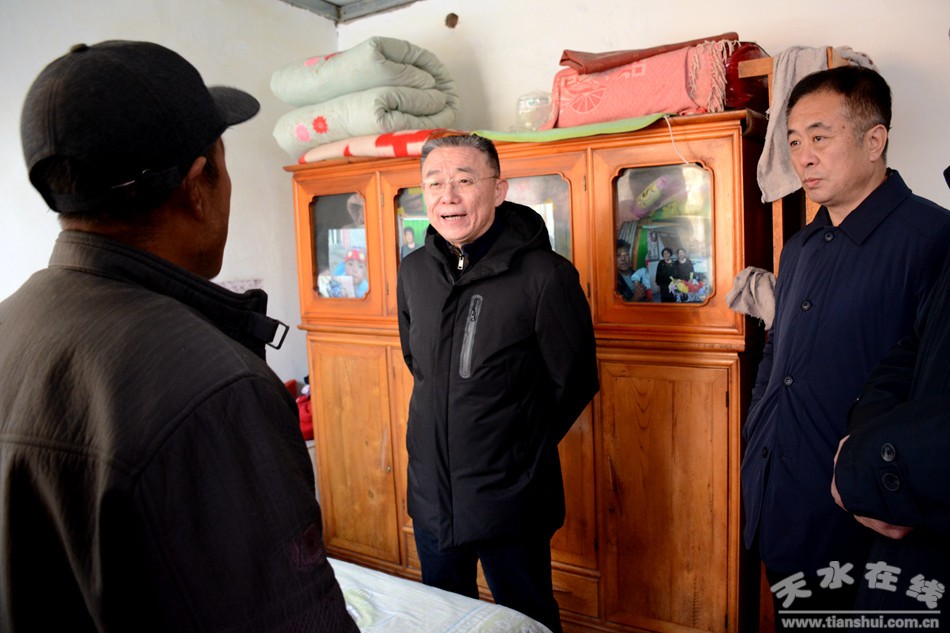 (在麥積區(qū)五龍鎮(zhèn)溫家坪村入戶走訪貧困戶溫兆松)