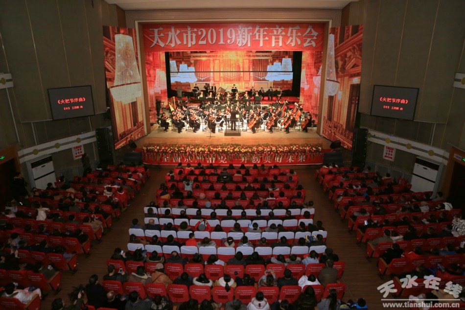 12月29日晚8時,由天水市委宣傳部和市文化和旅游局主辦的天水市2019新年音樂會在秦州大劇院精彩上演。陜西交響樂團為現(xiàn)場觀眾帶來了十余首不同風(fēng)格的經(jīng)典交響曲,其中既有大家耳熟能詳?shù)摹逗見A子組曲》、《拉德斯基進行曲》等經(jīng)典曲目,更有以交響音樂的形式演奏的《紅旗頌》、《紅色娘子軍組曲》等中國經(jīng)典音樂,展現(xiàn)出豐富的表現(xiàn)力。音樂會既是獻給我市市民的一份新年文化賀禮,也為新年期間營造出了歡樂祥和、文明有序、和諧健康的節(jié)日氣氛。市領(lǐng)導(dǎo)王正茂、蒲朝暉、王曉琴、逯克宗、蘇定武觀看了音樂會。
