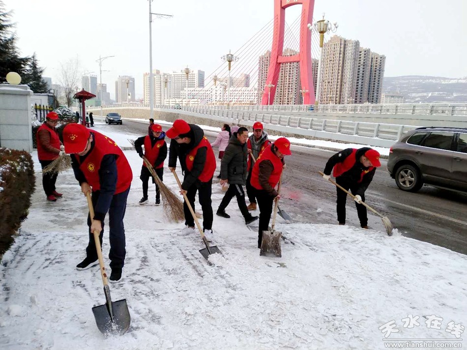 破冰除雪,保證安全出行。市直各單位志愿服務(wù)隊(duì)伍,28日一大早到結(jié)對(duì)街道、包抓社區(qū)報(bào)到,主動(dòng)認(rèn)領(lǐng)任務(wù);各街道社區(qū)結(jié)合實(shí)際情況,及時(shí)部署,科學(xué)分工,主動(dòng)與各單位搞好任務(wù)對(duì)接,并將在職黨員干部、轄區(qū)居民、志愿者合理編組,對(duì)轄區(qū)主次干道、背街小巷、單位和居民院落等區(qū)域大面積雪集中進(jìn)行清掃清除。在職黨員和轄區(qū)居民們克服天氣帶來(lái)的不良影響,齊心協(xié)力、合作攻堅(jiān),用鐵鍬、鏟子、掃帚等工具破除結(jié)冰、清理積雪,使降雪后的主干道和人行道快速通車通行,共同為安全出行環(huán)境奉獻(xiàn)力量,以實(shí)際行動(dòng)體現(xiàn)了黨員的先鋒模范形象。