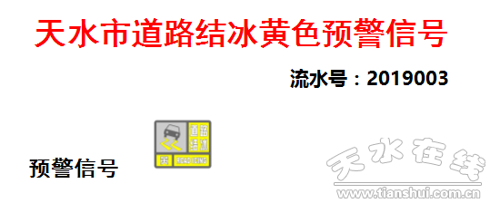 天水市氣象臺2019年01月03日10時(shí)10分繼續(xù)發(fā)布道路結(jié)冰黃色預(yù)警信號: