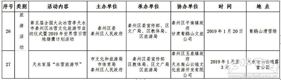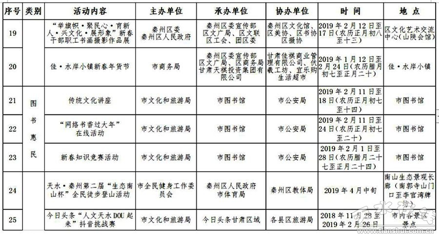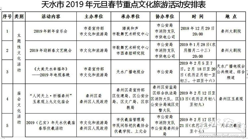 天水市2019年春節(jié)重點文化旅游活動安排表(圖)
