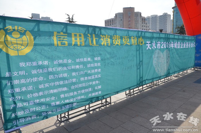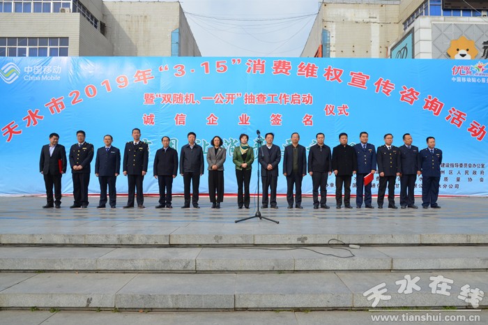 3月15日,天水市2019年“3·15”消費(fèi)維權(quán)宣傳咨詢活動暨“雙隨機(jī)、一公開”抽查工作啟動儀式在龍城廣場舉行。今年“3·15”消費(fèi)維權(quán)活動的主題是“信用讓消費(fèi)更放心”。