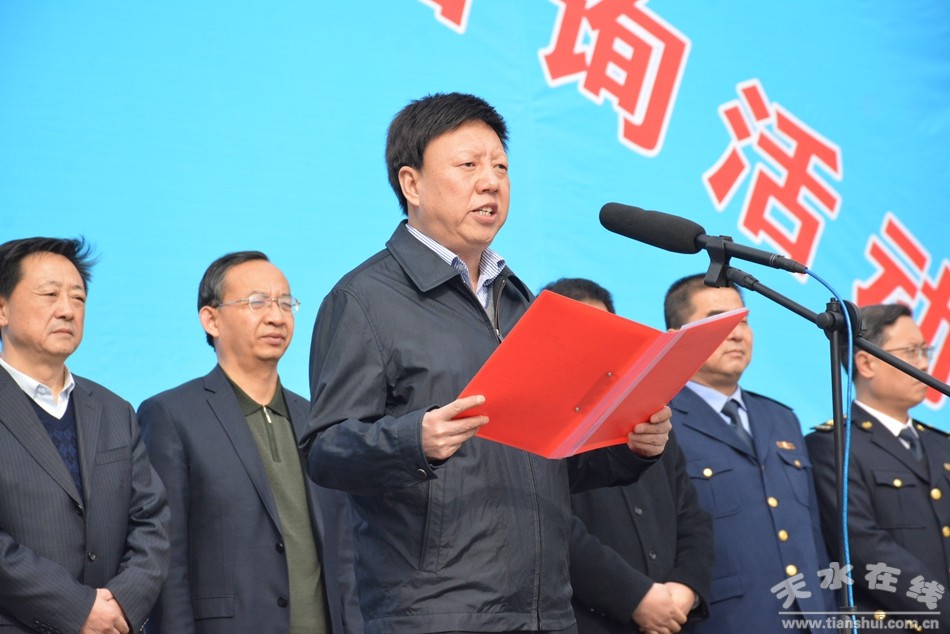 市委常委、統(tǒng)戰(zhàn)部部長溫利平宣布天水市部門聯(lián)合“雙隨機(jī)、一公開”抽查活動啟動;市人大常委會副主任宋建平,副市長王燕,市政協(xié)副主席王振宇出席啟動儀式。市委宣傳部、市文明辦、市市場監(jiān)管局等部門負(fù)責(zé)人,秦州區(qū)政府分管領(lǐng)導(dǎo),市消費(fèi)者協(xié)會各常務(wù)理事單位和理事單位負(fù)責(zé)人,市、區(qū)市場監(jiān)管局干部職工以及部分企業(yè)、個體工商經(jīng)營者代表和3·15志愿者共800多人參加活動。