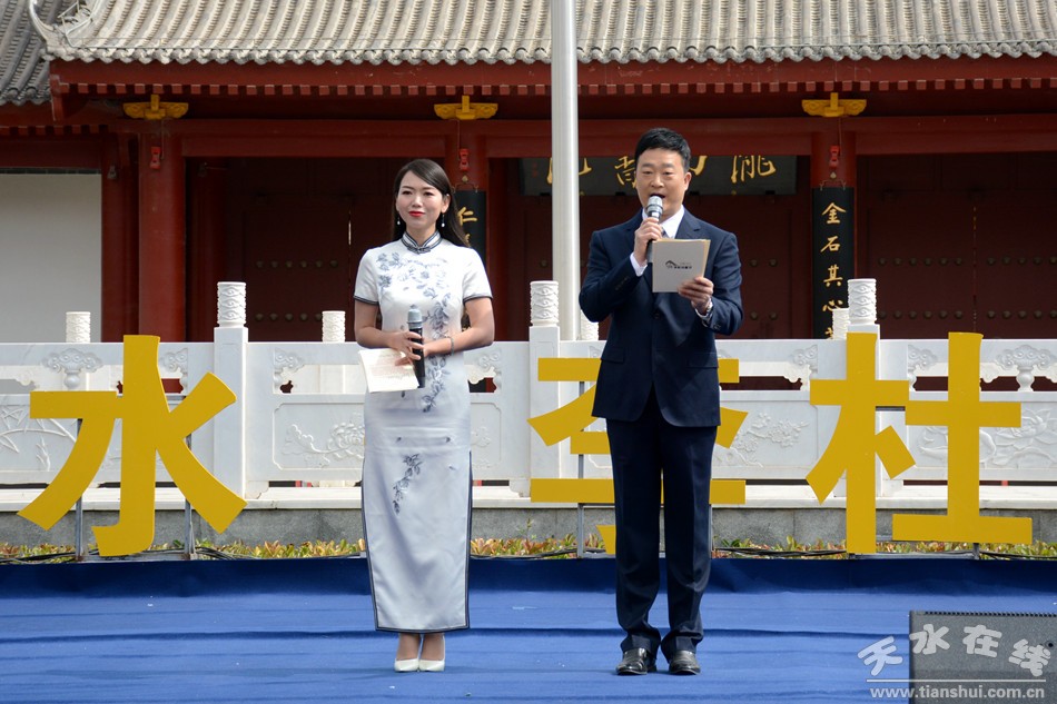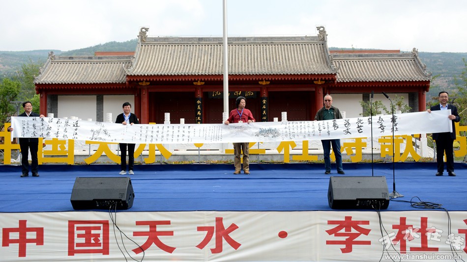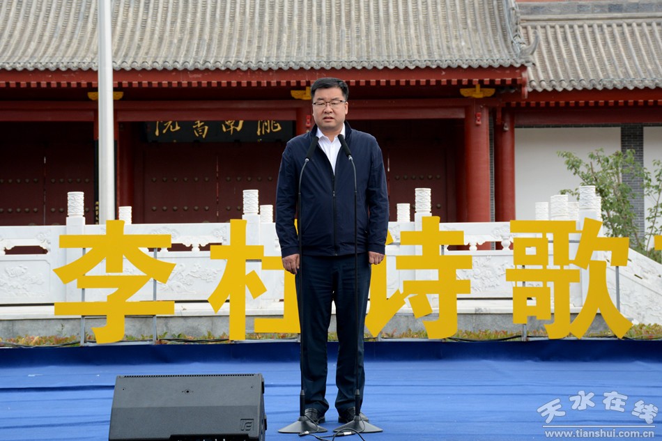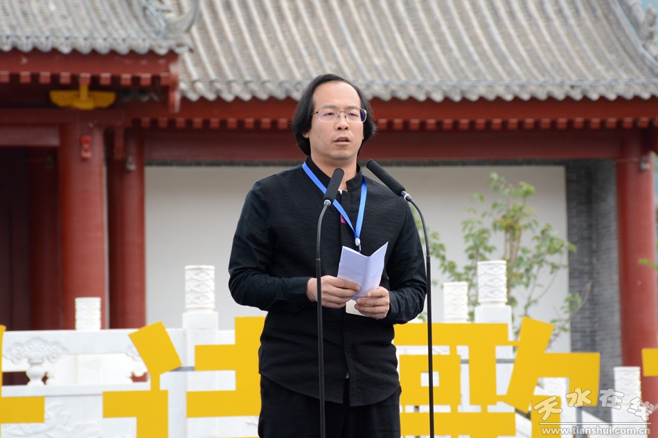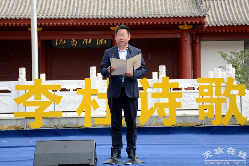 人民日報社甘肅分社社長董洪亮為第四屆“中國天水·李杜詩歌節(jié)”標(biāo)徽揭幕。中共天水市委常委、宣傳部部長張建杰宣布第四屆“中國天水·李杜詩歌節(jié)”開幕。