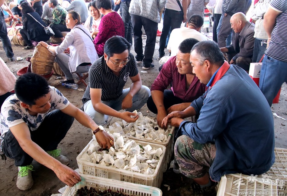 天水在線6月5日攝影報(bào)道 6月5日,在線小編在位于天水市秦州區(qū)玉泉鎮(zhèn)煙鋪村的煙鋪大櫻桃交易市場(chǎng)看到,套袋大櫻桃已經(jīng)全面上市。同時(shí),隨著美早等個(gè)大品種和套袋櫻桃的上市,櫻桃價(jià)格有所上漲。
