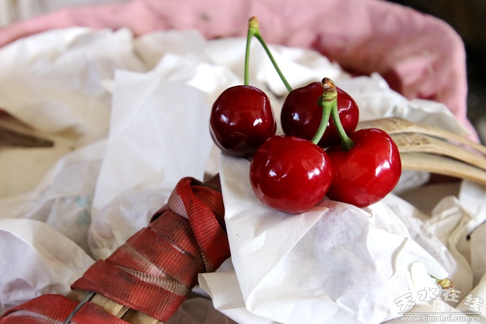 甘肅省天水市秦州區(qū)玉泉鎮(zhèn)煙鋪村距市區(qū)僅3公里之遙,早在七八千年前母系氏族部落就在這里繁衍生息。煙鋪村是典型的半濕潤(rùn)半干旱溫帶氣候,冬無(wú)嚴(yán)寒,夏無(wú)酷暑,雨量適中,光照充足,肥水中等,土層深厚。得天獨(dú)厚的自然資源優(yōu)勢(shì),特別適宜無(wú)公害優(yōu)質(zhì)果品生產(chǎn),是我國(guó)最佳的大櫻桃生產(chǎn)區(qū)域之一。這里的萬(wàn)畝櫻桃園栽培的品種有紅燈、8-129、美早、意大利早紅、莫莉、早大果、巨紅、佳紅、佐滕錦、勝利、友誼、拉賓斯、8-102、斯坦勒、薩米脫、賓庫(kù)、那翁、艷陽(yáng)、奇好、宇宙、先鋒、雷尼爾、7-101等20多個(gè)。