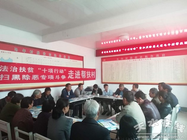 為貫徹落實天水市司法局《法治扶貧“十項行動”實施方案》和《2019年精準(zhǔn)扶貧工作計劃》,聚集全市掃黑除惡專項斗爭工作開展和貧困村群眾法律服務(wù)需求,6月21日,天水市司法局組織的法治扶貧“十項行動”暨掃黑除惡專項斗爭走進(jìn)武山縣龍臺鎮(zhèn)馬年村開展幫扶活動。