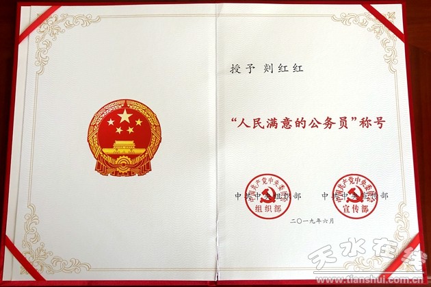 6月25日,剡紅紅以全國(guó)“人民滿意的公務(wù)員”的身份進(jìn)京參加了第九屆全國(guó)“人民滿意的公務(wù)員”和“人民滿意的公務(wù)員集體”表彰大會(huì),且和受表彰代表一道在人民大會(huì)堂受到了黨和國(guó)家領(lǐng)導(dǎo)人親切會(huì)見(jiàn)并合影留念。在此次評(píng)選表彰活動(dòng)中,全國(guó)稅務(wù)系統(tǒng)共4名個(gè)人和一個(gè)集體當(dāng)選,其中剡紅紅是甘肅稅務(wù)系統(tǒng)惟一一名當(dāng)選者。