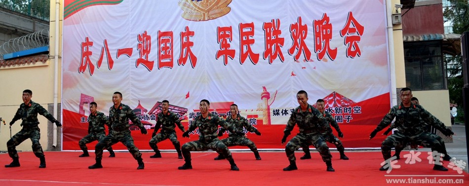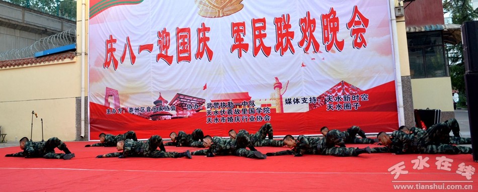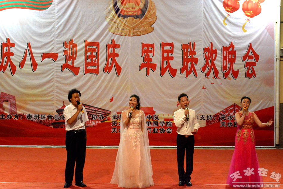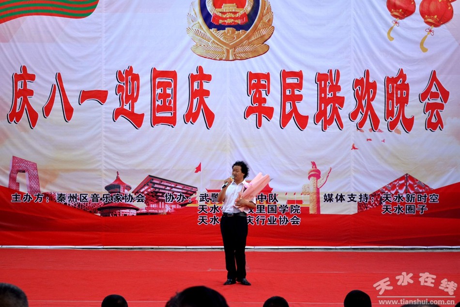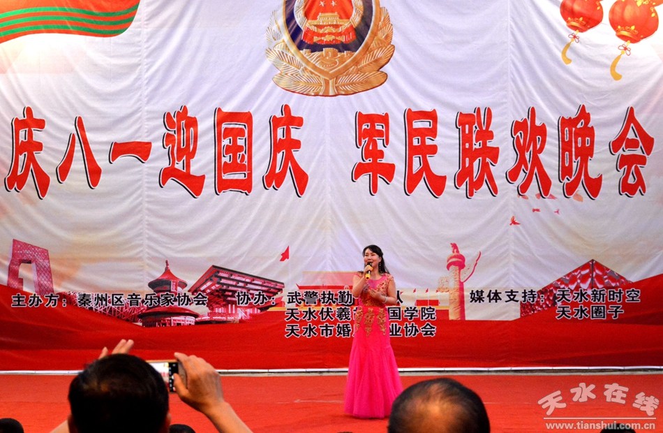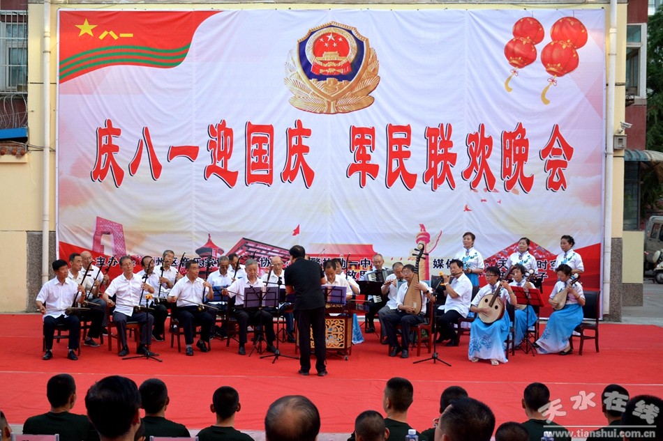 在中國人民解放軍建軍92周年的喜慶日子里,在新中國70周年華誕即將到來之際,7月30日晚,由天水市秦州區(qū)音樂家協(xié)會主辦,武警天水支隊執(zhí)勤一中隊、伏羲故里國學院、天水市婚慶行業(yè)協(xié)會協(xié)辦的“慶八一 、迎國慶” 軍民聯(lián)歡晚會在武警天水支隊執(zhí)勤一中隊舉行。