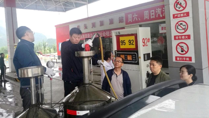 此次檢查組共抽查加油站10座,檢查加油機20余臺,各油品加油槍72只,檢定率100%,檢定合格率100%。