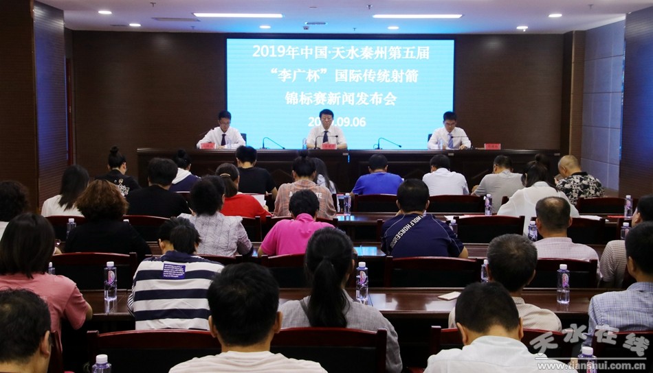 9月6日,2019年中國·天水秦州第五屆“李廣杯”國際傳統(tǒng)射箭錦標(biāo)賽組委會新聞辦公室舉行新聞發(fā)布會。甘肅日報、甘肅電視臺、甘肅經(jīng)濟日報、甘肅廣播電臺、蘭州晨報、蘭州晚報、每日甘肅網(wǎng)、天水日報、天水晚報、天天天水網(wǎng)、天水廣播電視臺、天水廣電網(wǎng)、數(shù)字天水、天水在線、市政府網(wǎng)等新聞媒體的記者參加了新聞發(fā)布會。