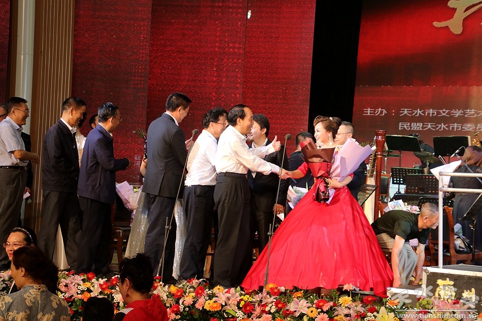 (演出結(jié)束,觀看演出的領(lǐng)導(dǎo)登臺(tái)祝賀。)