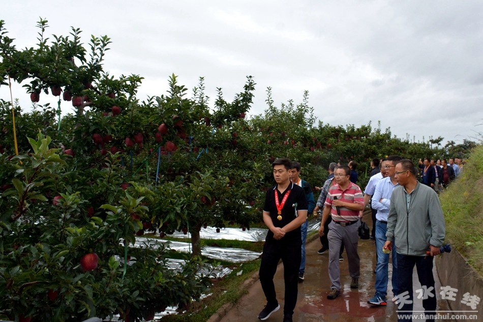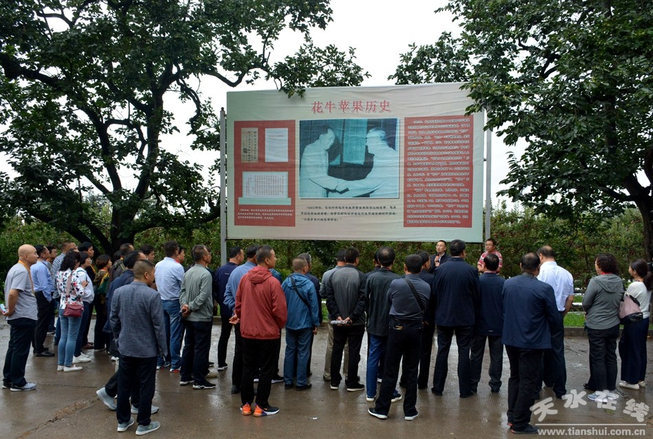 (在麥積區(qū)南山萬畝花牛蘋果基地參觀)