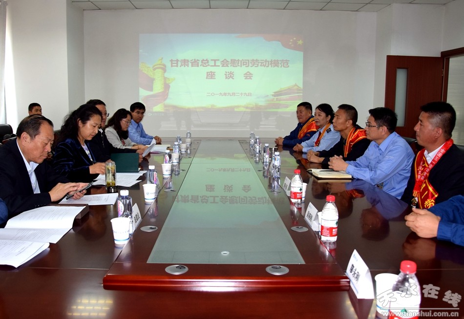9月29日,省總工會(huì)黨組成員、副主席吳俏燕帶領(lǐng)省總工會(huì)第五慰問組來天水市,開展慶祝新中國成立70周年走訪慰問勞動(dòng)模范活動(dòng)。我市全國勞動(dòng)模范鐘耕波,全國五一勞動(dòng)獎(jiǎng)?wù)芦@得者廖永強(qiáng),甘肅省先進(jìn)工作者、全國“人民滿意的公務(wù)員”剡紅紅,甘肅省勞動(dòng)模范吳曉剛、劉民祥、廖永剛等接受慰問。市人大常委會(huì)副主任、市總工會(huì)主席蒲朝暉一同慰問。