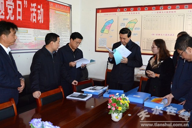 調(diào)研中,趙衛(wèi)東來到關(guān)子鎮(zhèn)大灣村查看村級脫貧攻堅資料,了解秦州區(qū)貧困退出預(yù)驗(yàn)收開展情況,并隨機(jī)深入貧困戶王床懷、王成德家中,查看脫貧攻堅到戶資料,詳細(xì)了解他們的產(chǎn)業(yè)發(fā)展、住房、安全飲水、醫(yī)療保障、子女上學(xué)等情況。