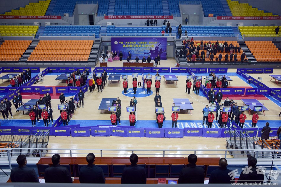 天水市體育局、天水市青少年體育俱樂(lè)部聯(lián)合會(huì)、甘肅天麟集團(tuán)等有關(guān)單位負(fù)責(zé)同志,以及來(lái)自河北、山東、四川、陜西、寧夏、甘肅等6個(gè)省、市、自治區(qū)36支代表隊(duì)的運(yùn)動(dòng)員、教練員、裁判員和省內(nèi)乒乓球愛(ài)好者1000余人參加了開(kāi)賽儀式。