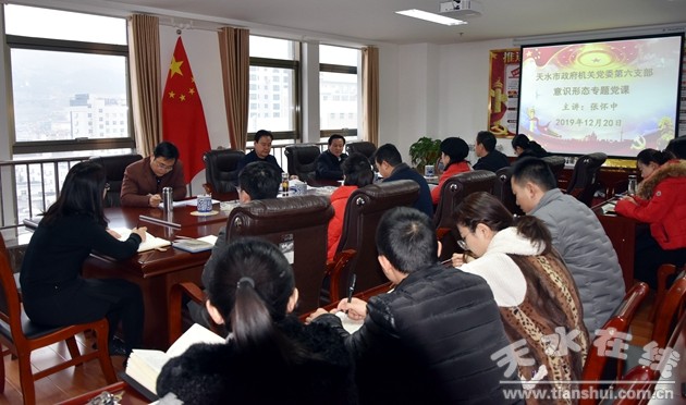 12月20日,市政府機(jī)關(guān)黨委第六支部舉行意識形態(tài)工作專題黨課學(xué)習(xí)活動,市機(jī)關(guān)事務(wù)管理局全體黨員干部職工聆聽了黨課。