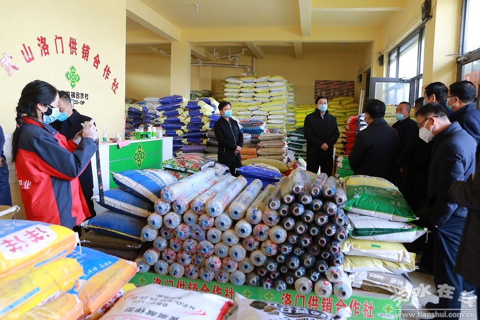 在洛門供銷合作社農(nóng)資銷售部,趙衛(wèi)東實地查看農(nóng)資倉庫地膜、種子、化肥等春耕物資儲備情況,詳細(xì)詢問了農(nóng)資儲備、供貨渠道、銷售價格、市場需求等方面的情況。他強(qiáng)調(diào),要全力做好疫情防控期間春耕農(nóng)資供應(yīng)和價格穩(wěn)定工作,創(chuàng)新經(jīng)營服務(wù)模式,提高為農(nóng)服務(wù)能力,為春耕生產(chǎn)提供保障。