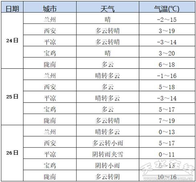26~27日我市有小雨(雪)天氣