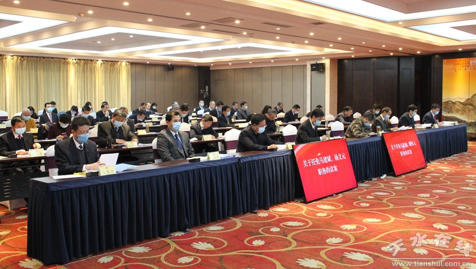 3月27日,天水市七屆人大常委會(huì)第二十八次會(huì)議召開。市人大常委會(huì)主任蔣曉強(qiáng)、市人大常委會(huì)副主任安志宏分別主持第一、二次全體會(huì)議。出席會(huì)議的常委會(huì)組成人員符合法定人數(shù)。