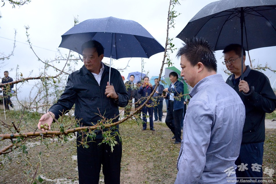 6月1日,按照市委主要領(lǐng)導(dǎo)安排,市政協(xié)主席、市委農(nóng)村工作領(lǐng)導(dǎo)小組常務(wù)副組長(zhǎng)趙衛(wèi)東帶領(lǐng)市農(nóng)業(yè)農(nóng)村局、市果業(yè)辦、市氣象局、市應(yīng)急管理局、人保財(cái)險(xiǎn)天水分公司等有關(guān)部門單位負(fù)責(zé)人到遭受雹災(zāi)的秦州區(qū)、秦安縣、麥積區(qū)察看受災(zāi)情況,指導(dǎo)自產(chǎn)自救和抗災(zāi)減災(zāi)工作。趙衛(wèi)東強(qiáng)調(diào),要以群眾利益為重,靠前服務(wù)、主動(dòng)作為,釆取切實(shí)有效措施,做好抗災(zāi)減災(zāi)工作,最大限度減少災(zāi)害損失,保障脫貧攻堅(jiān)順利收官。
