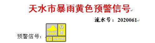 天水市氣象臺(tái)2020年6月7日14時(shí)50分發(fā)布暴雨黃色預(yù)警信號: