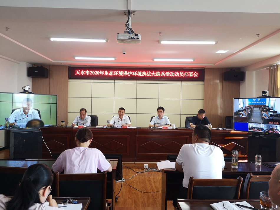 6月24日,天水市生態(tài)環(huán)境局組織召開2020年天水市生態(tài)環(huán)境保護(hù)執(zhí)法大練兵動員部署視頻會議。市生態(tài)環(huán)境局主要領(lǐng)導(dǎo)、分管領(lǐng)導(dǎo)、市、縣兩級生態(tài)環(huán)境保護(hù)綜合行政執(zhí)法隊(duì)負(fù)責(zé)人及全體執(zhí)法人員參加會議。