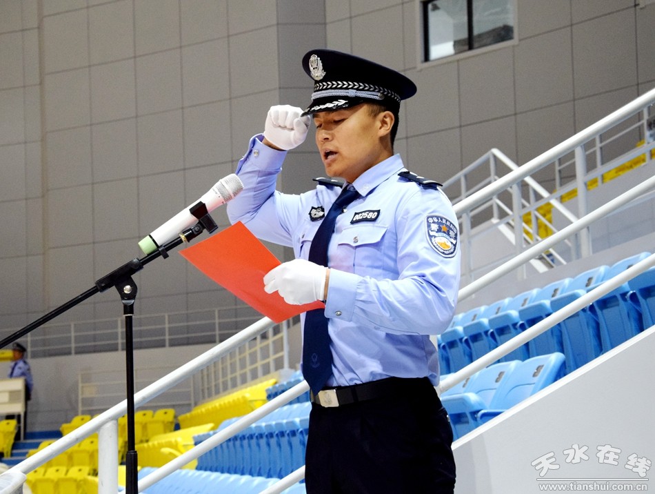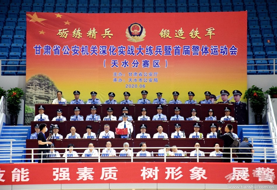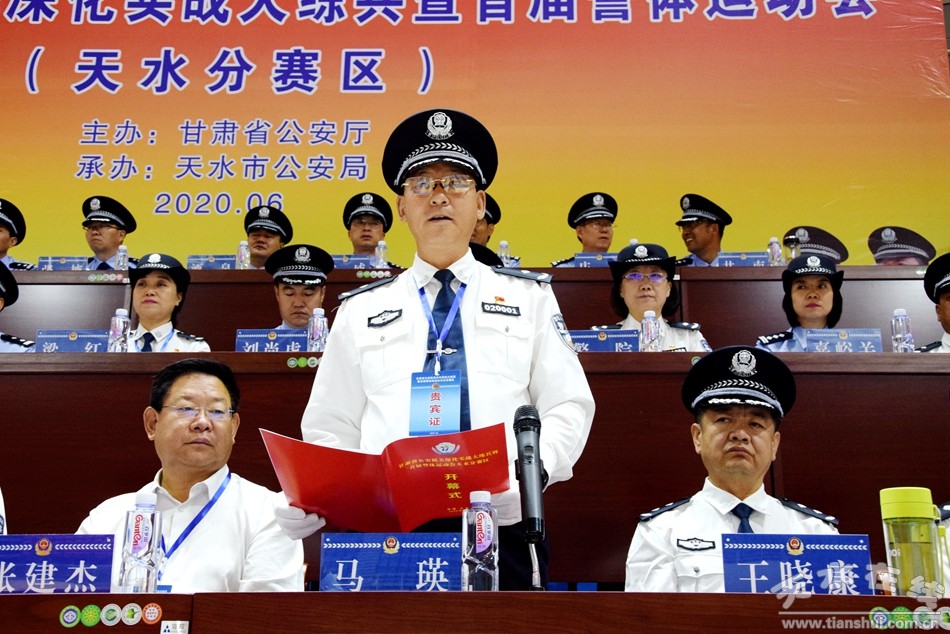 6月28日,甘肅省公安機關(guān)深化實戰(zhàn)大練兵暨首屆警體運動會天水分賽區(qū)開幕式在天水市體育中心舉行。省公安廳黨委委員、政治部主任曹明,天水市委常委、政法委書記蒲軍,市委常委、宣傳部部長張建杰,市人大常委會副主任王曉琴,市政協(xié)副主席郭明興出席開幕式。副市長、市公安局局長馬瑛主持開幕式。