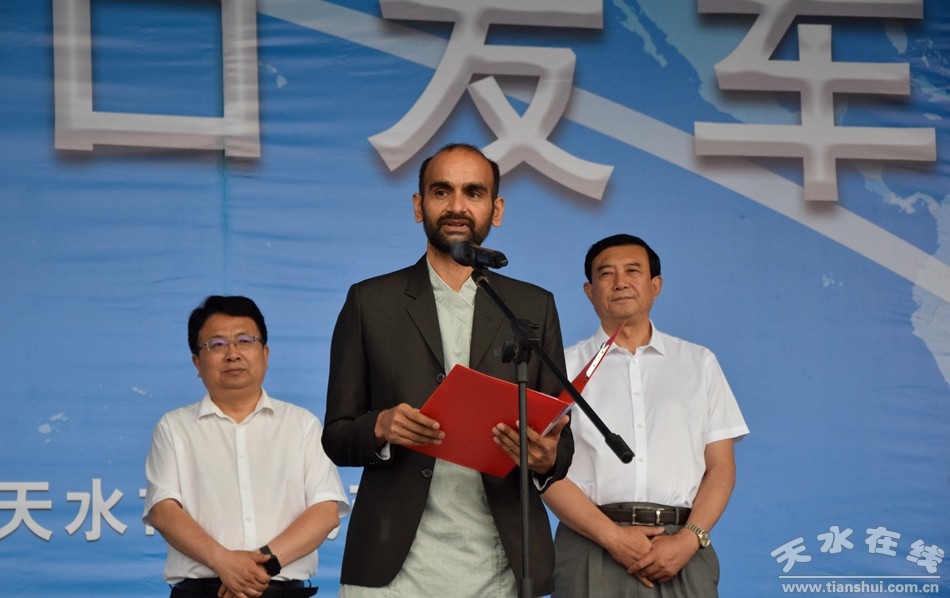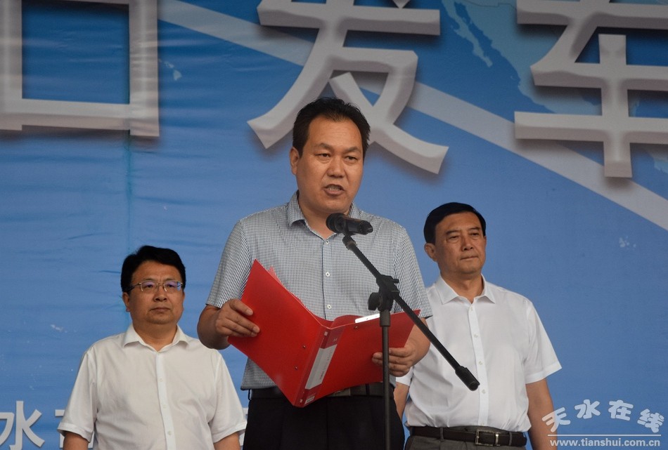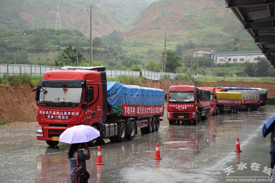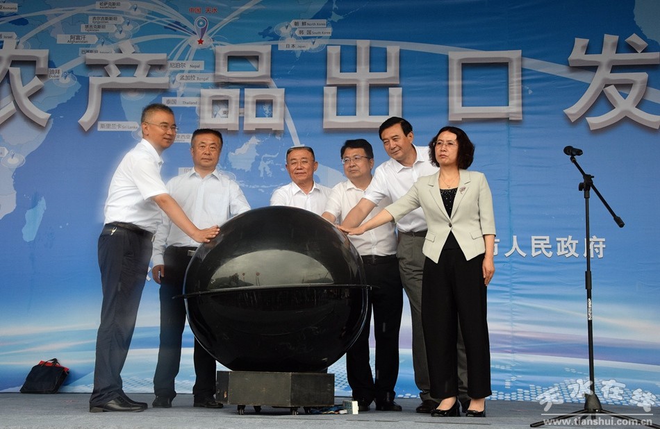 (省政協(xié)副主席、市委書記王銳宣布天水農(nóng)產(chǎn)品出口發(fā)車儀式啟動)