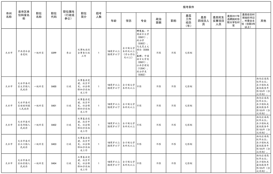 天水市2020年度考試錄用機關(guān)公務員和參照公務員法管理單位工作人員公告