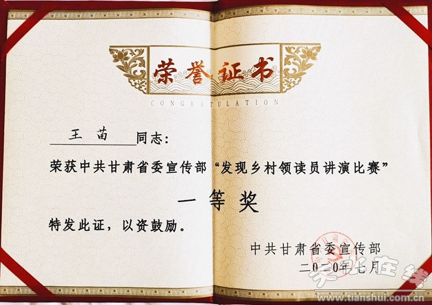 7月15日,省委宣傳部在蘭州舉辦了2020年“發(fā)現(xiàn)鄉(xiāng)村領(lǐng)讀員”全省農(nóng)家書屋閱讀講演比賽。這次活動緊扣“決勝全面小康、決勝脫貧攻堅”主題,以“講小康故事、講脫貧故事”為基本內(nèi)容,通過農(nóng)民演講的表現(xiàn)形式,讓農(nóng)民講述讀書、用書的經(jīng)歷、體會和感受,展現(xiàn)農(nóng)家書屋給農(nóng)村帶來的變化,給農(nóng)民帶來的實惠,體現(xiàn)農(nóng)家書屋在脫貧攻堅中的“扶智、扶志”作用。在全省14個市州30名選手的角逐中,我市推選的兩名選手,甘谷縣大像山鎮(zhèn)東關(guān)村農(nóng)家書屋管理員王苗、甘谷縣金山小學(xué)圖書室管理員王美惠分別獲得第一名、第二名的好成績,被省委宣傳部聘為“全省新時代鄉(xiāng)村閱讀季活動鄉(xiāng)村領(lǐng)讀員”。我市獲得全省優(yōu)秀組織獎。