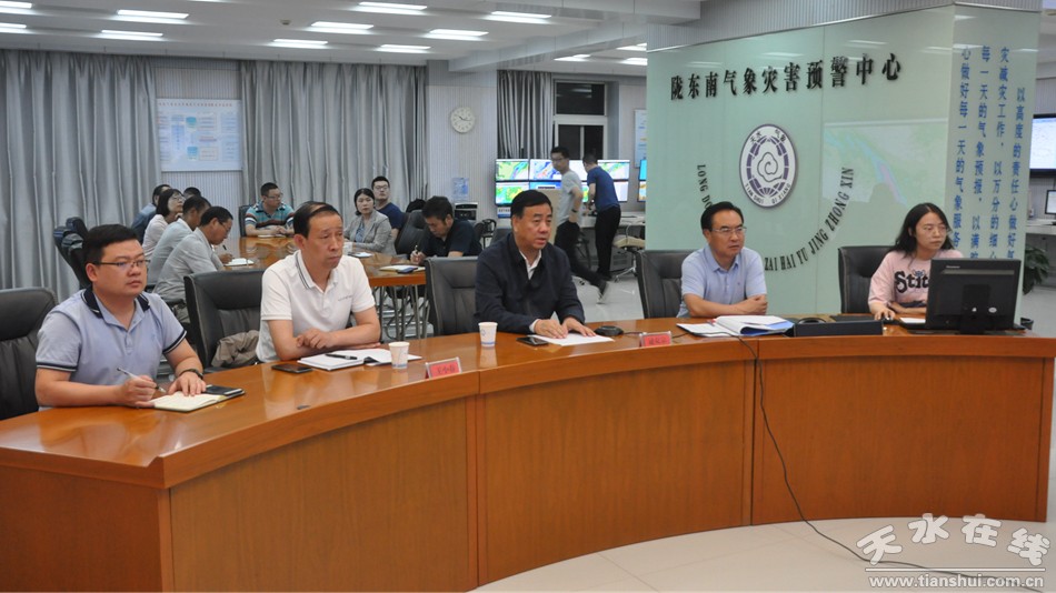8月15日晚,天水市副市長逯克宗到市氣象局指揮調度暴雨天氣防范應對工作,這也是針對此次強降雨天氣第三次主持召開的防汛視頻調度會。