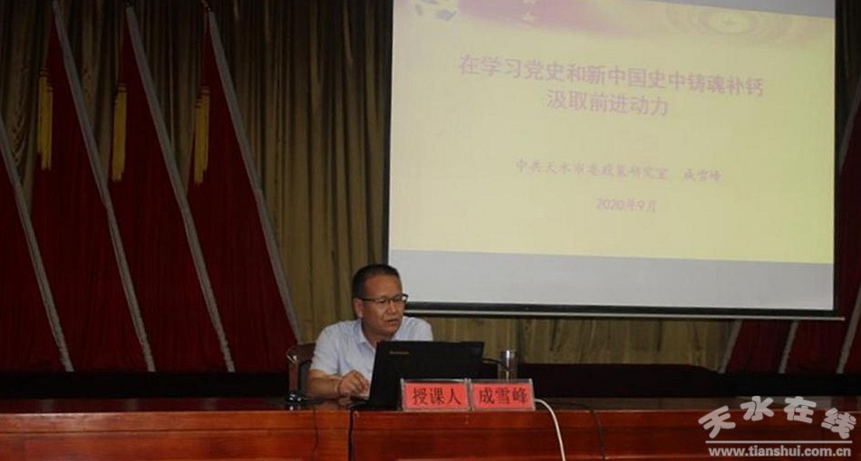 市委政策研究室副主任成雪峰系統(tǒng)講述了黨史以及新中國史,并表示要從學習黨史和新中國史中鑄魂補鈣汲取前進動力。成雪峰表示認真學習黨史新中國史既是一次把握規(guī)律、把握未來的理論學習,也是一次堅定信仰、堅定方向的黨性教育。通過學習可以增強對黨的感情、理論和政治認同。并對繼承和發(fā)揚黨內(nèi)光榮革命傳統(tǒng)、黨的優(yōu)良作風,以及提高黨員認識能力和處理實際問題的能力十分必要。