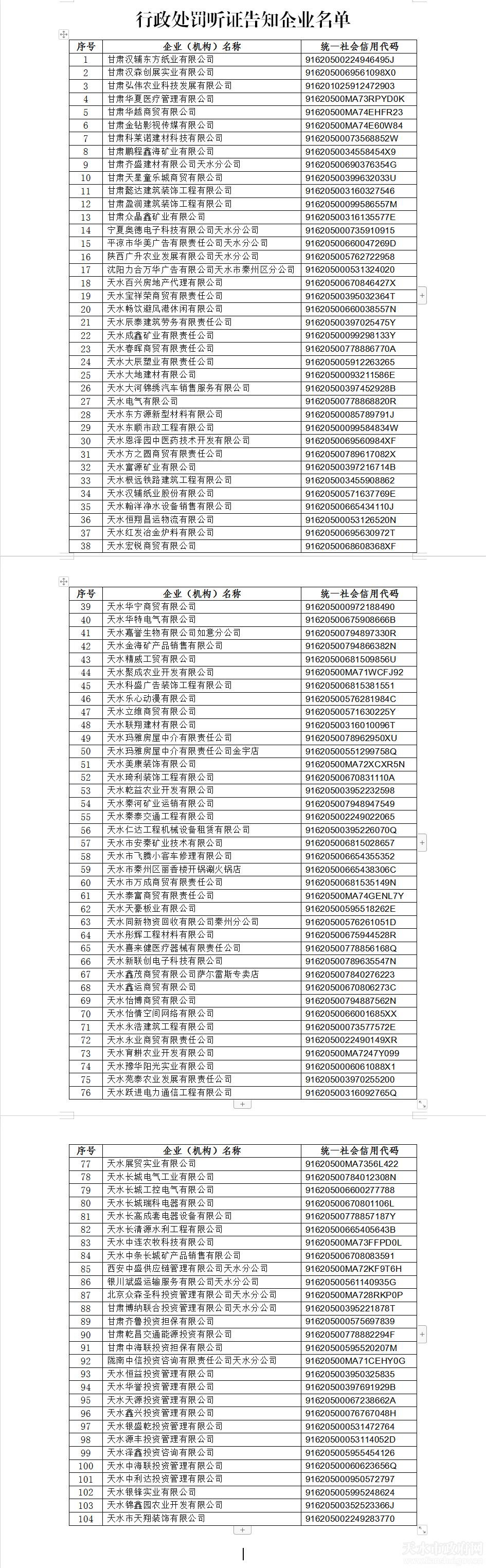 近日,天水市市場監(jiān)管局發(fā)布《行政處罰聽證告知公告》擬吊銷甘肅漢鋪東方紙業(yè)有限公司等104戶企業(yè)營業(yè)執(zhí)照。