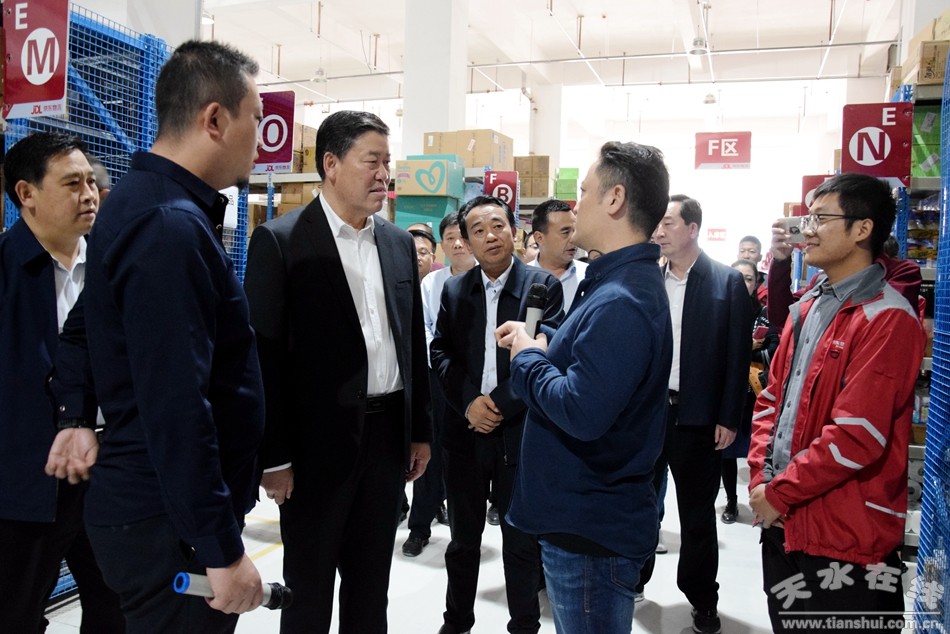 在京東TDC城市倉項(xiàng)目現(xiàn)場,王軍察看商品倉儲(chǔ)和電商運(yùn)營情況,并現(xiàn)場體驗(yàn)京東網(wǎng)購服務(wù)。王軍對項(xiàng)目的建設(shè)給予充分肯定,并囑咐項(xiàng)目負(fù)責(zé)人要做好安全生產(chǎn)管理,吸納當(dāng)?shù)厝罕娋徒蜆I(yè),秦州區(qū)政府及市直有關(guān)部門要做好項(xiàng)目二期建設(shè)服務(wù)工作,促進(jìn)京東TDC城市倉項(xiàng)目在天水做大做強(qiáng)。