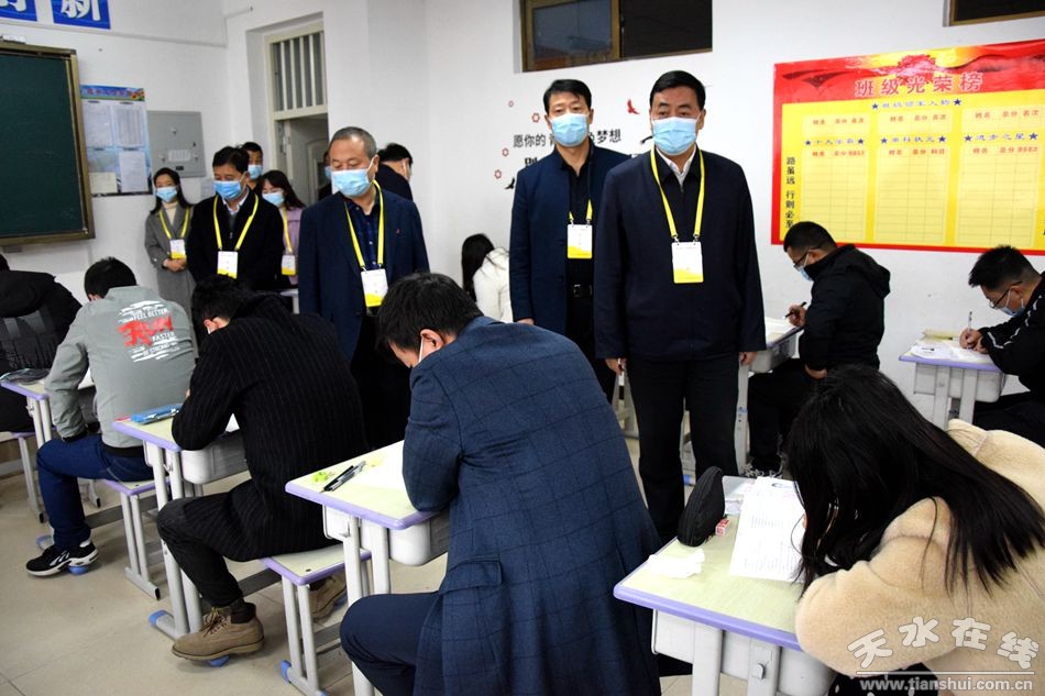 10月31日,全國二級建造師考試和2020年下半年甘肅省中小學教師資格全國統(tǒng)一考試(筆試)同日進行。副市長逯克宗現場巡考天水考場。