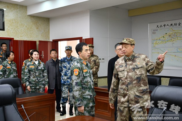 11月7日,甘肅省軍區(qū)司令員王文清帶領(lǐng)武威市副市長唐修亞,金昌軍分區(qū)司令員熊吉本等組成的國防動員和后備力量“三項(xiàng)基礎(chǔ)”建設(shè)交互檢查工作組檢查指導(dǎo)天水人防工作,天水市委常委、政法委書記蒲軍,天水軍分區(qū)政委石明等一同檢查。