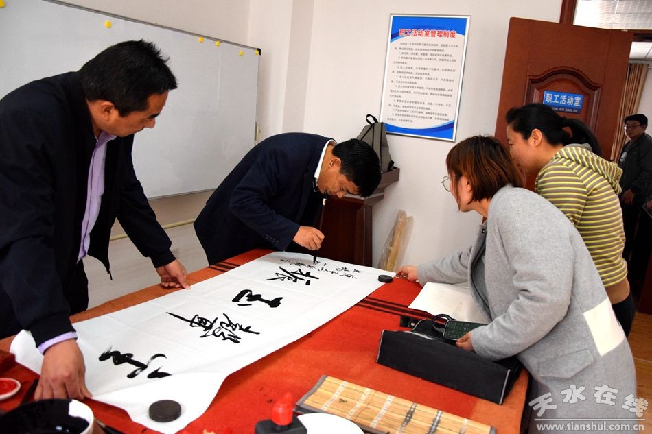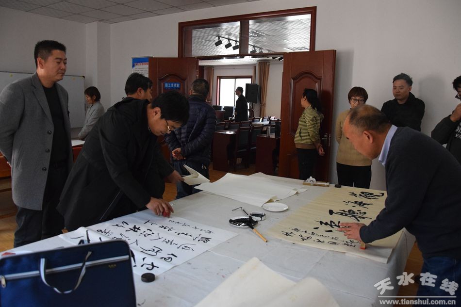 下午,釆風(fēng)團(tuán)隨行的書(shū)法家們還和小隴山觀音林場(chǎng)干部職工進(jìn)行了書(shū)畫(huà)交流活動(dòng),書(shū)法家們紛紛潑墨揮毫,為觀音林場(chǎng)干部職工創(chuàng)作了數(shù)十幅精美的書(shū)法作品,受到了干部職工的熱烈歡迎。