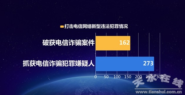 ——打擊詐騙犯罪富有成效。全市公安機(jī)關(guān)始終堅(jiān)持以人民為中心,保持嚴(yán)打態(tài)勢(shì),依法嚴(yán)厲打擊電信網(wǎng)絡(luò)新型違法犯罪,堅(jiān)決遏制電信網(wǎng)絡(luò)詐騙案件的高發(fā)勢(shì)頭,切實(shí)維護(hù)人民群眾合法權(quán)益。全面落實(shí)“市局主研、區(qū)縣主戰(zhàn)、派出所主控、技術(shù)支撐、捆綁作業(yè)”電詐犯罪打防新機(jī)制,深入推進(jìn)“斷卡”行動(dòng),組織集群戰(zhàn)役和大案攻堅(jiān),不斷整合資源、破解難題,多破案、壓發(fā)案、減存量、遏增量,堅(jiān)決把犯罪分子囂張氣焰打下去,最大限度地為群眾追贓挽損。行動(dòng)中,共破獲電信網(wǎng)絡(luò)詐騙案件162起、抓獲犯罪嫌疑人273名,相繼破獲了秦州“10.18”“11.25”、甘谷“8.21”、秦安“11.12”等一批電信網(wǎng)絡(luò)詐騙案,鏟除一黑灰產(chǎn)業(yè)鏈條。