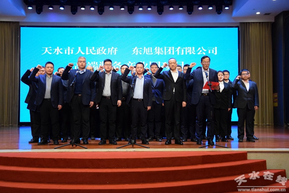 簽約儀式上,副市長張棟梁代表天水市政府與東旭集團相關(guān)負(fù)責(zé)人簽訂了高端裝備產(chǎn)業(yè)園項目投資協(xié)議;東旭集團代表還進行了宣誓。簽約儀式由市委常委、副市長景丹主持。