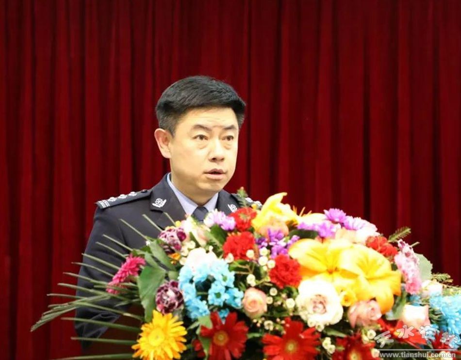 郭慶祥在宣講會上講話。他說,在首個“中國人民警察節(jié)”來臨之際,舉辦功模民警事跡宣講會,既是充分發(fā)揮先進典型示范引領作用,激勵全市公安機關和廣大 民輔警凝聚起奮進新時代、開啟新征程強大力量的有效載體,更是忠實踐行習近平總書記重要訓詞 精神,扎實開展“鑄魂強基、爭創(chuàng)一流”行動,著力推動天水公安奮勇爭先、爭創(chuàng)一流、走在前列 的務實舉措。希望全市公安機 關廣大公安民輔警要以先進模范為鏡,向先進典型看齊,弘揚功模精神,傳承優(yōu)良作風,銳意奮發(fā) 進取,矢志不渝奮斗,努力以爭當表率、樹立品牌、爭做示范的實際行動,在新的征程上再創(chuàng)佳績 、再立新功。